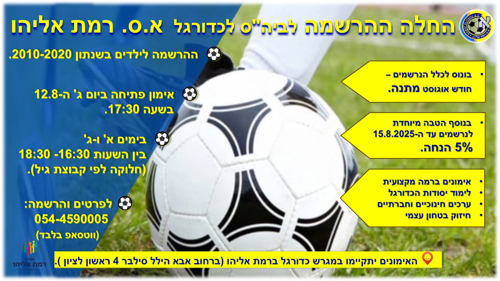 רישום שחקן לבית הספר לכדורגל 2025-2026